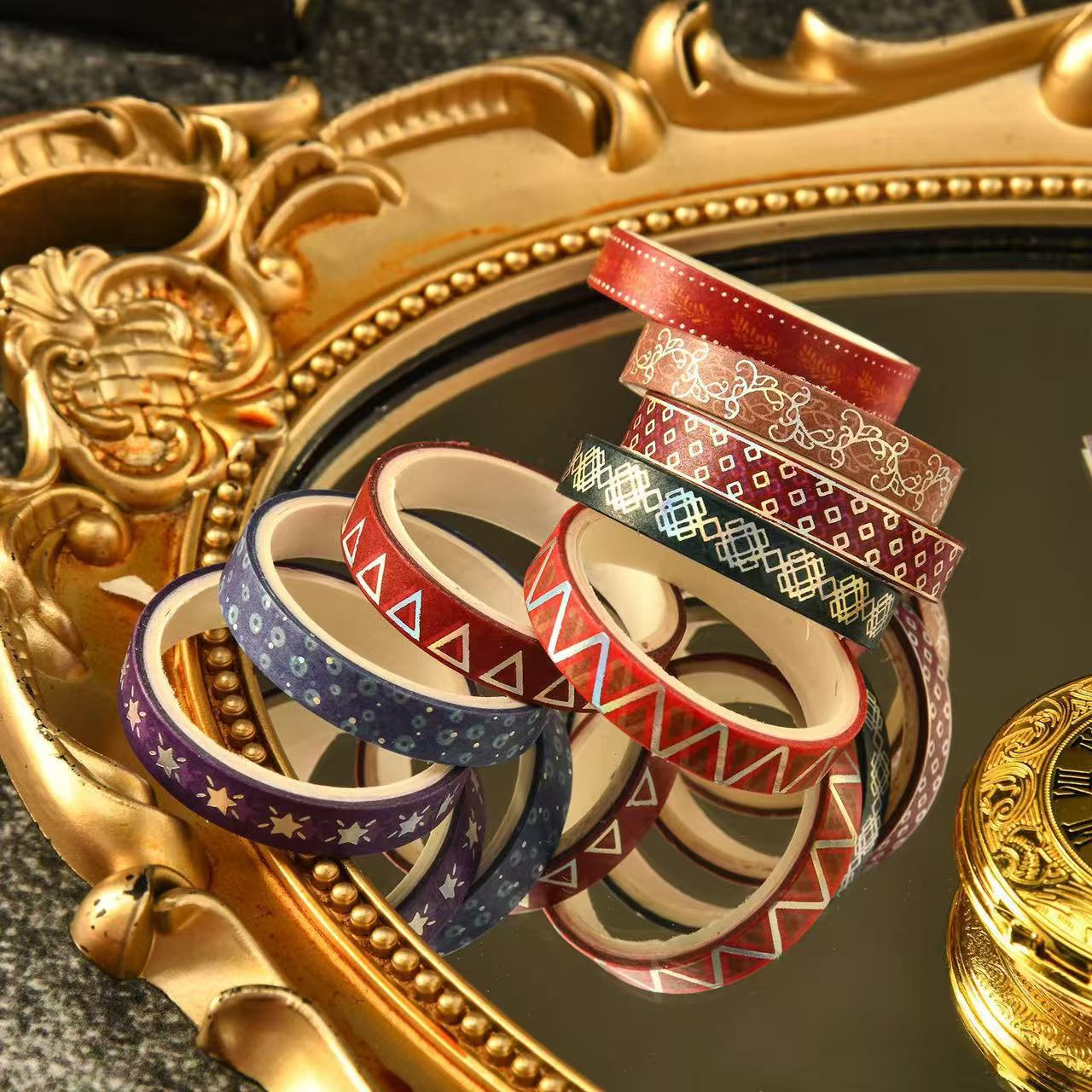 Washi Tape Vintage Heartfelt Series Black Gold Foil 36 Rolls 0.7cm